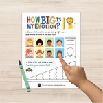 Use this printable activity to help children regulate their emotions, notice, and explore their feelings. Includes eight common emotions, plus a space for children to write another emotion they are feeling. Children can then color the scale to express how strongly they are feeling this emotion.